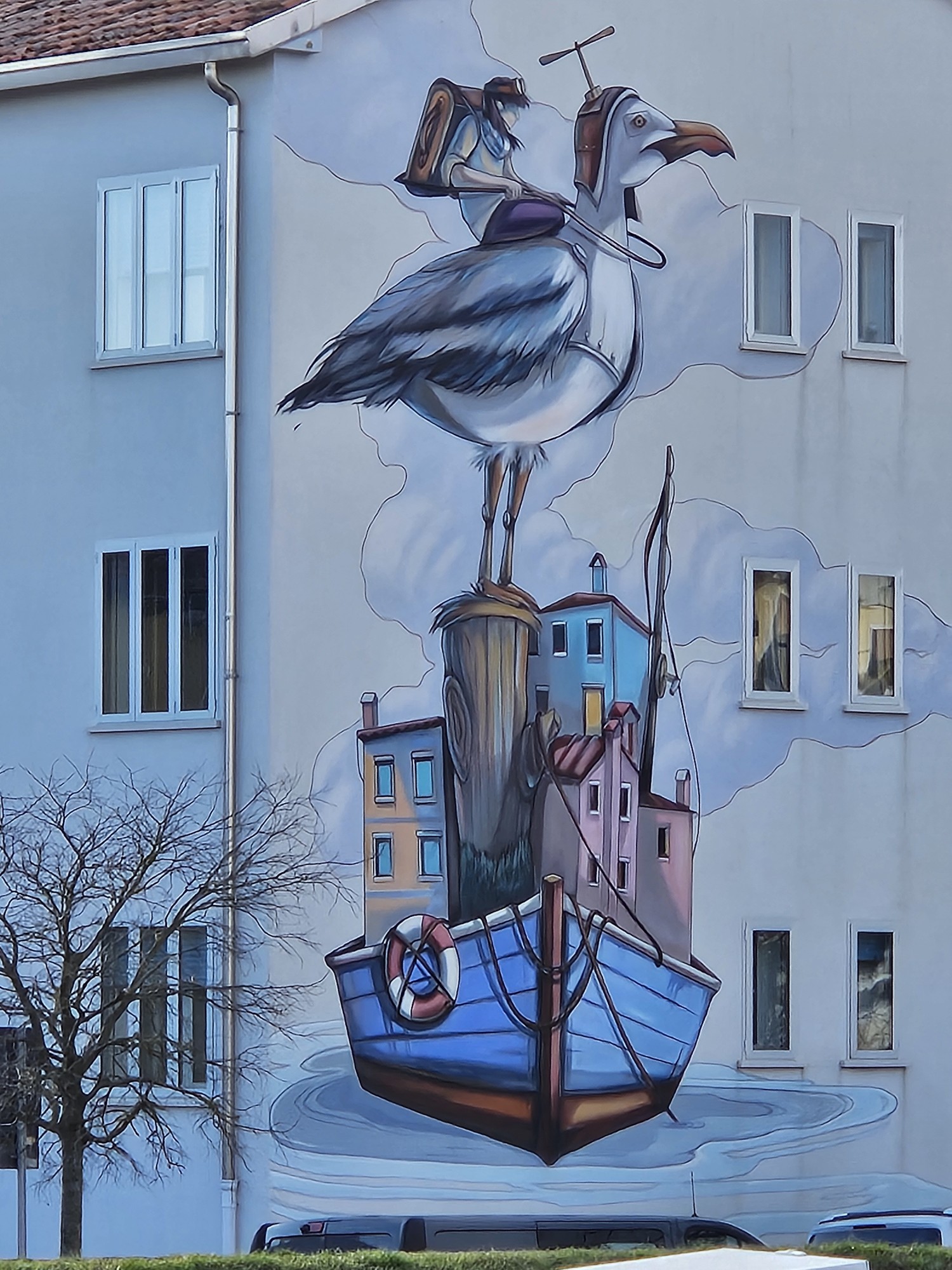 Este es otro de los bellos murales que se encuentran en algunos de los edificios cercanos al canal principal del puerto de Caorle.