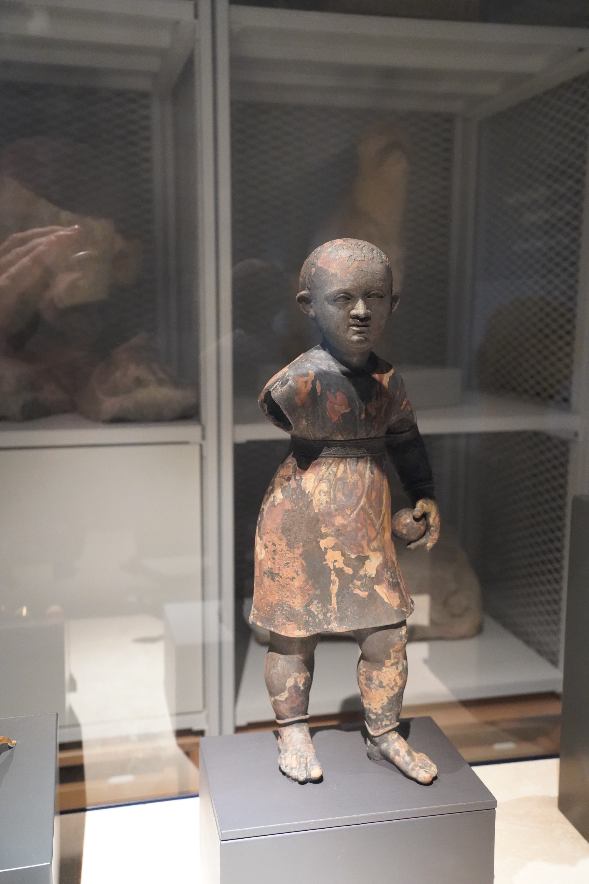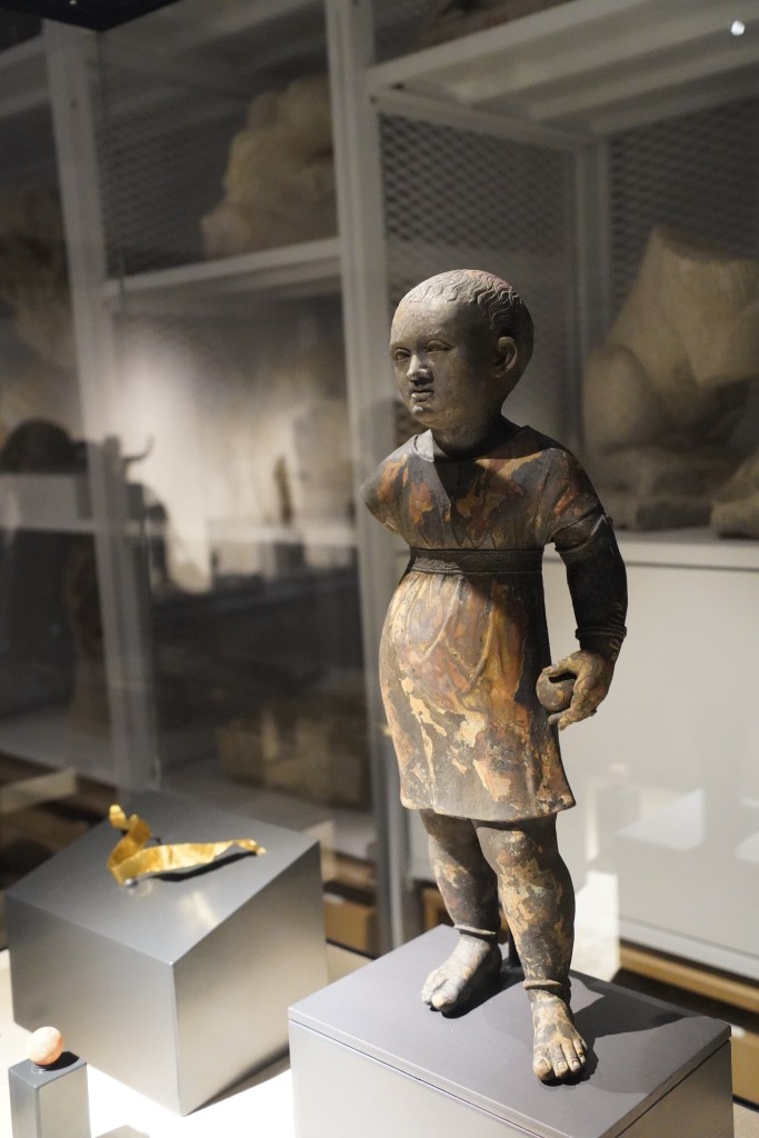 En los baños de San Casciano se han encontrado varias estatuas de niños pequeños, en dos de ellas el niño tienen una pelotita en la mano.