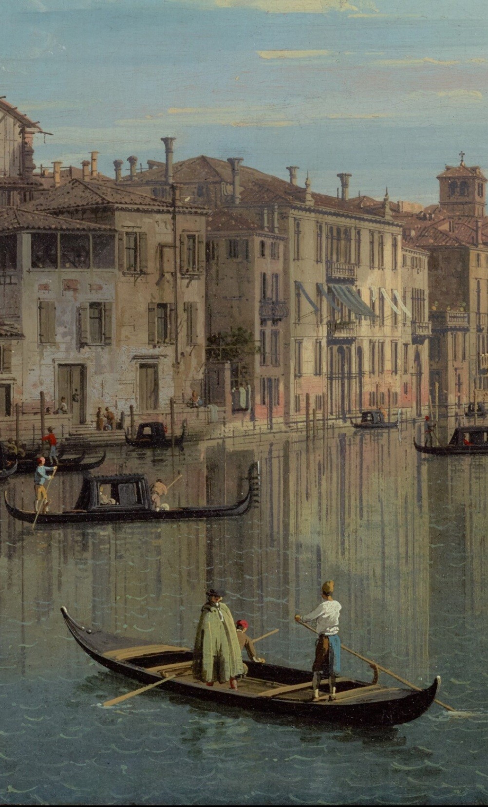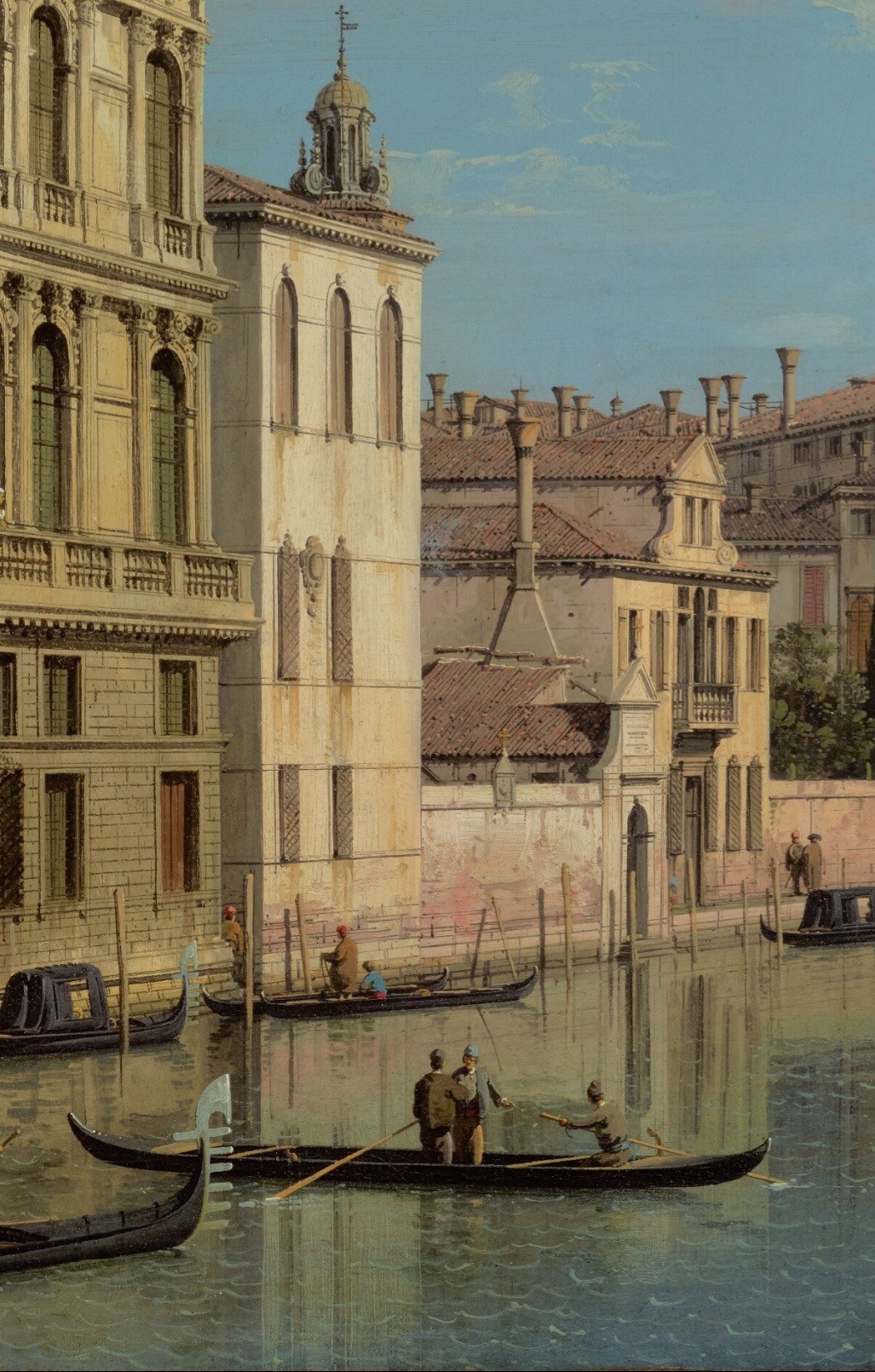 He tratado de identificar los edificios representados en la pintura, pero o el canal ha cambiado mucho en los últimos 200 años o este es otro de los Caprichos de Canaletto.