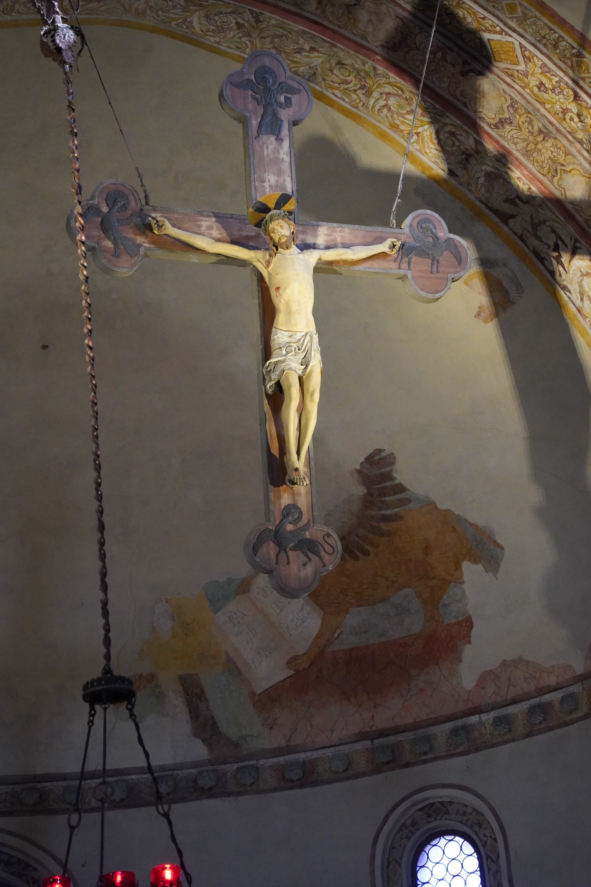 Dos elementos destacan en la zona del altar mayor: un retablo de plata dorada del siglo XIII (Pala d’oro) que representa la Anunciación en seis paneles y una bellísima cruz de madera del siglo XIV.
