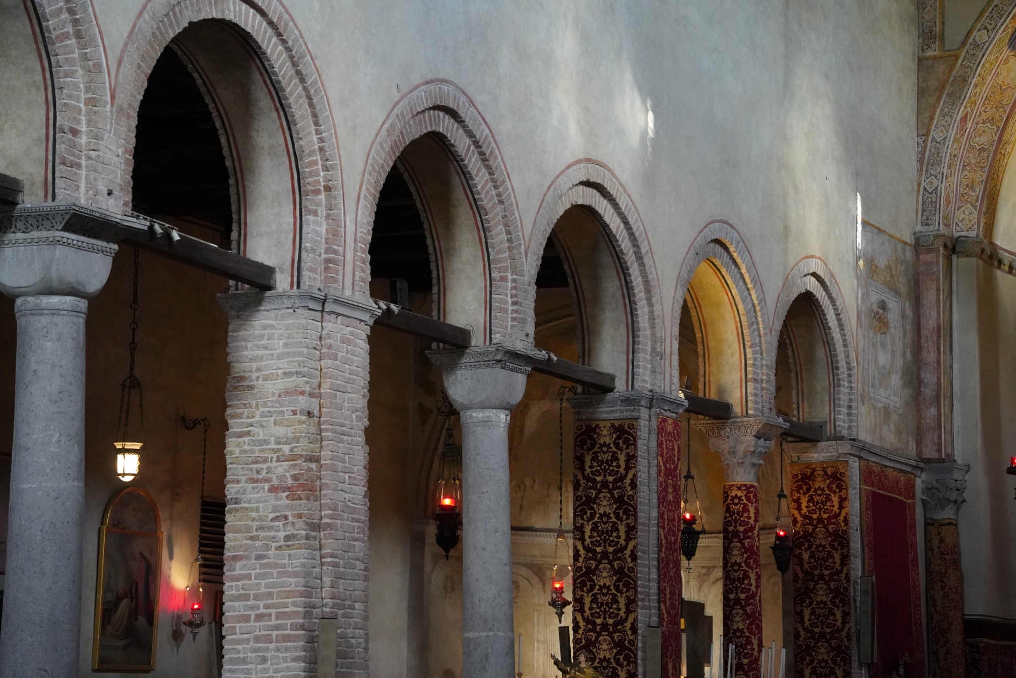 En los muros de las naves laterales todavía es posible ver algunos antiguos afrescos.