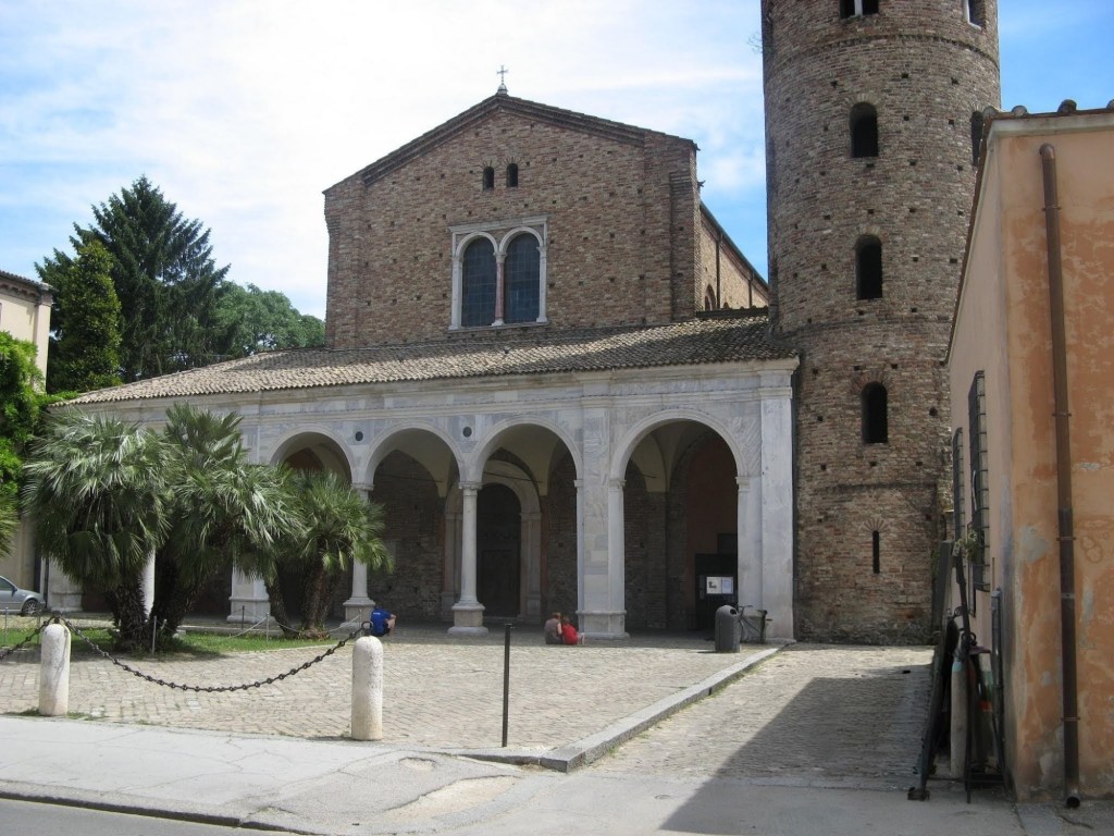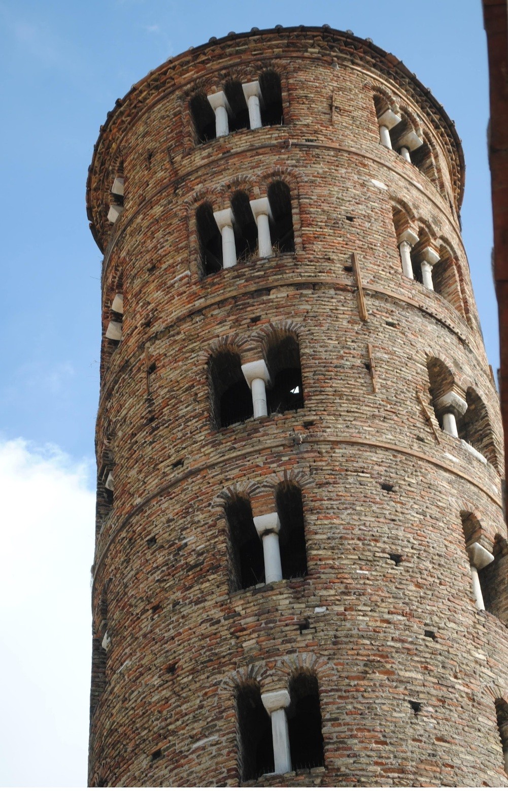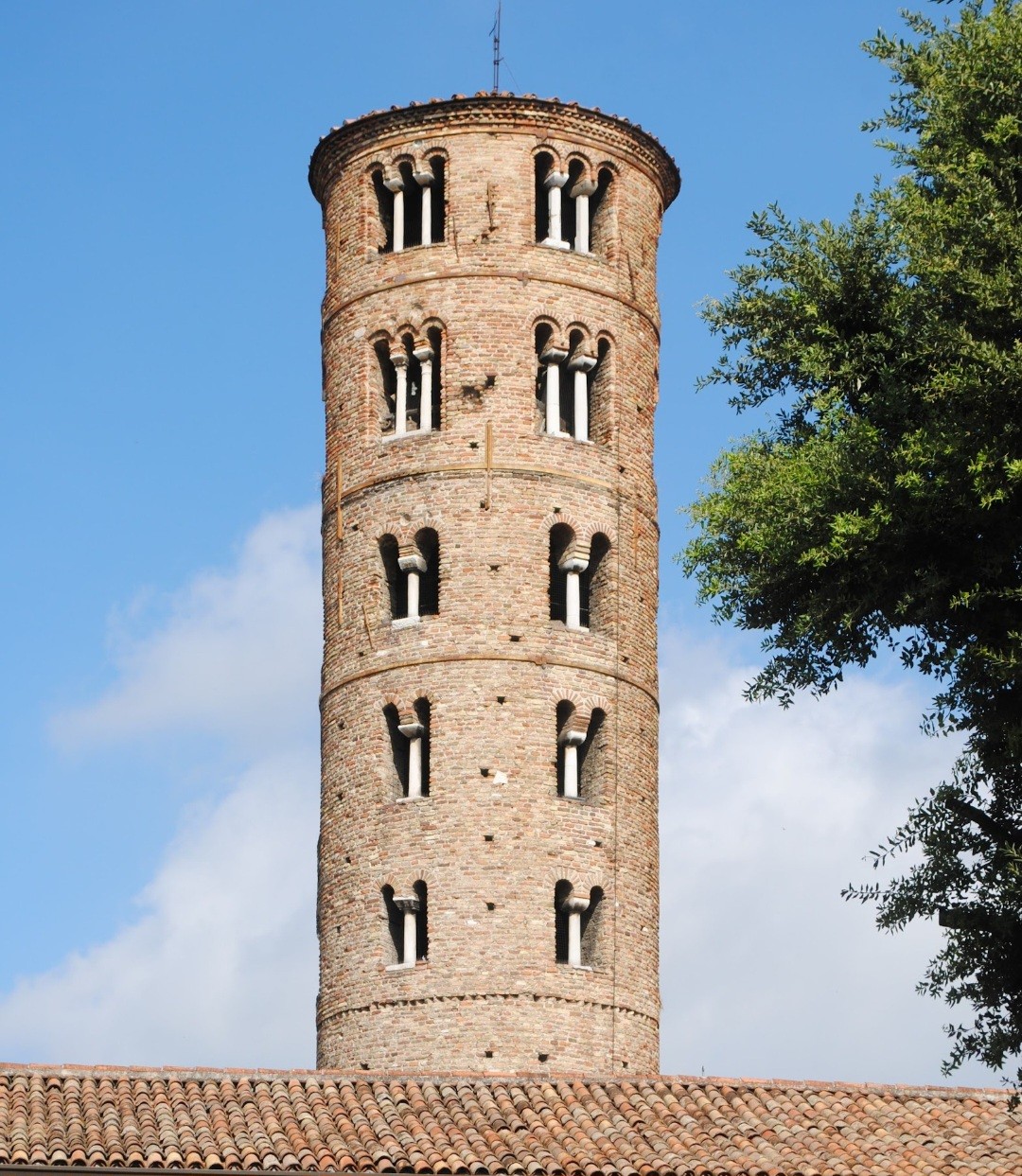 Il campanile di Sant’Apollinare Nuovo, costruito tra il IX e il X secolo, affianca il lato destro della basilica, originariamente eretta da Teodorico il Grande nel VI secolo come chiesa palatina ariana e poi consacrata al culto cattolico.