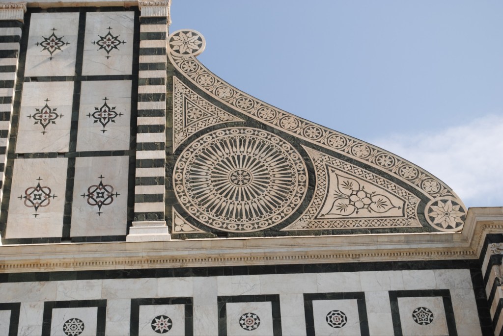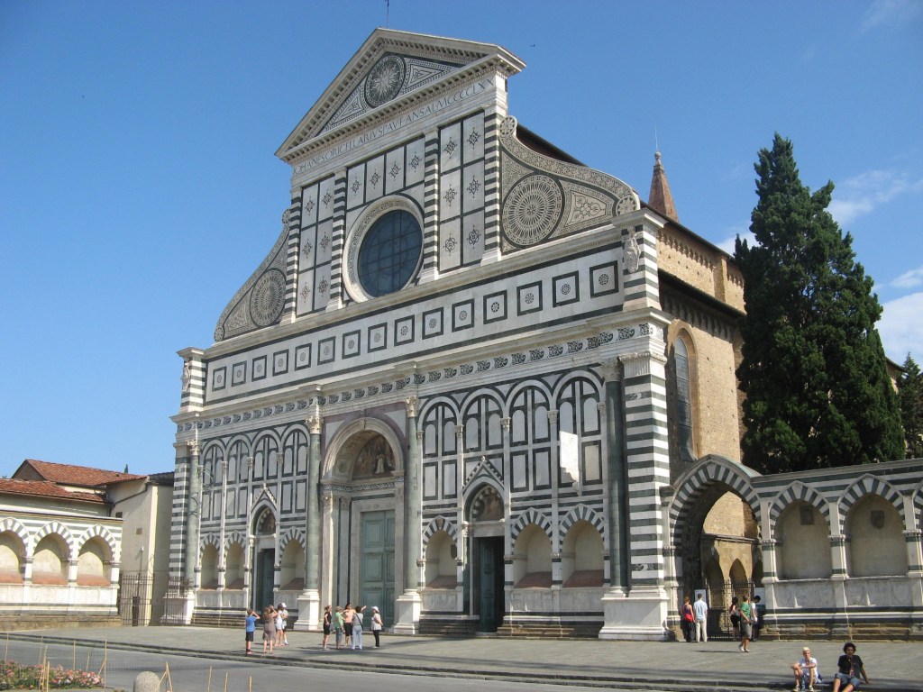 La basílica de Santa María Novella constituye uno de los ejemplos más representativos de la arquitectura religiosa florentina, distinguiéndose por su extraordinaria fachada revestida de mármol policromo.