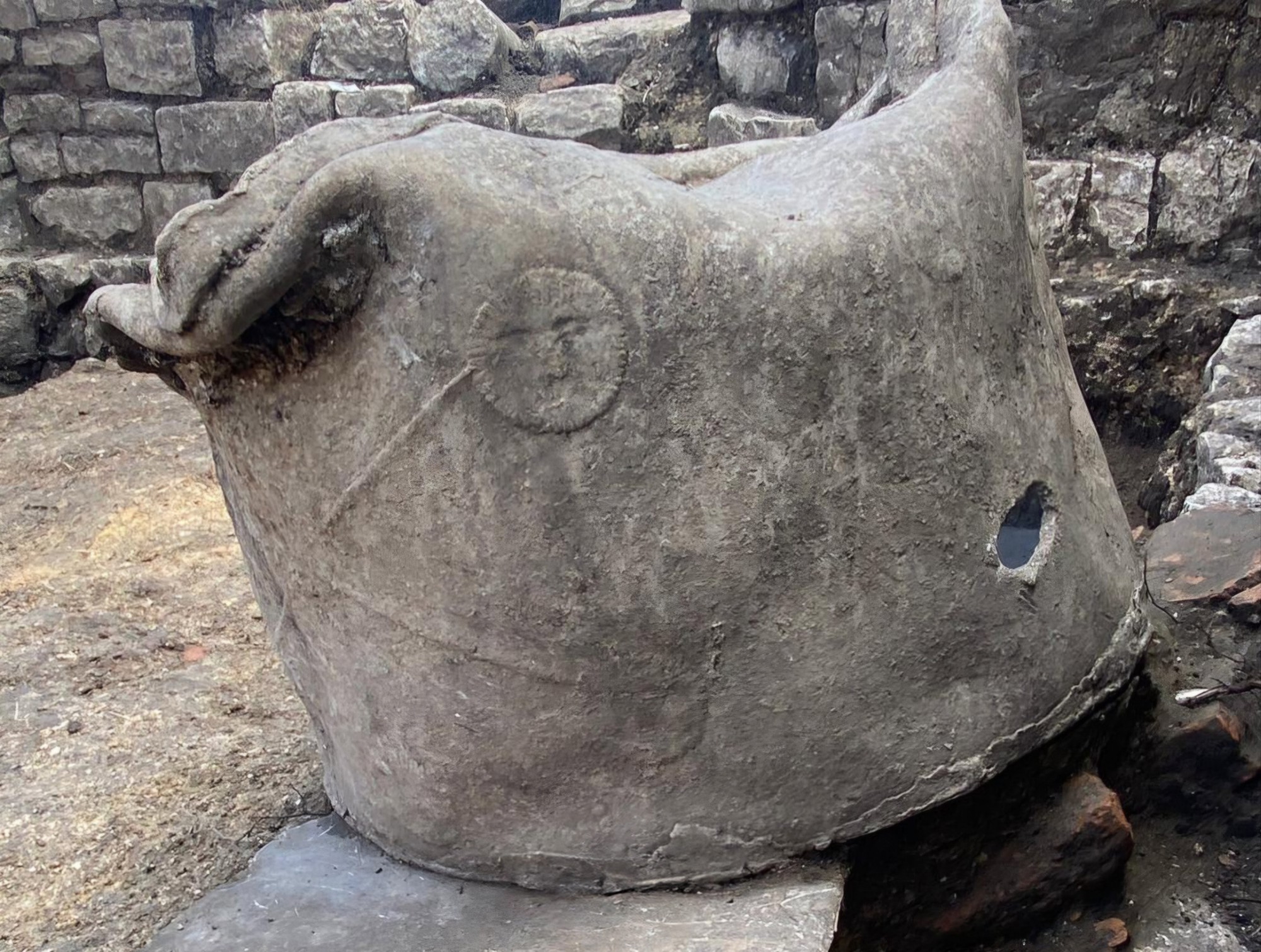 Entre los hallazgos más espectaculares destaca un gran contenedor cilíndrico de plomo, decorado en relieve con motivos solares estilizados y cabezas de Gorgona. Se trata del elemento central de un sofisticado sistema doméstico de calentamiento de agua, un auténtico caldarium privado. Junto con fragmentos de tuberías y válvulas encontrados en la excavación, esta pieza ofrece un raro testimonio de las tecnologías hidráulicas empleadas en las residencias de alto nivel del mundo romano.
