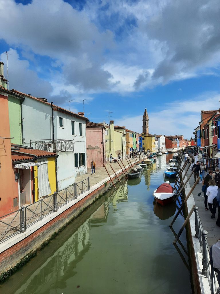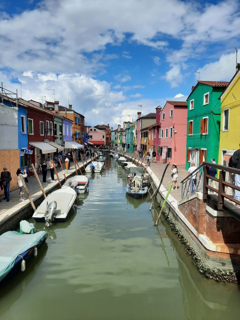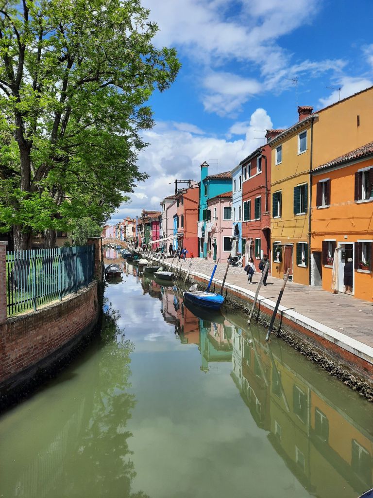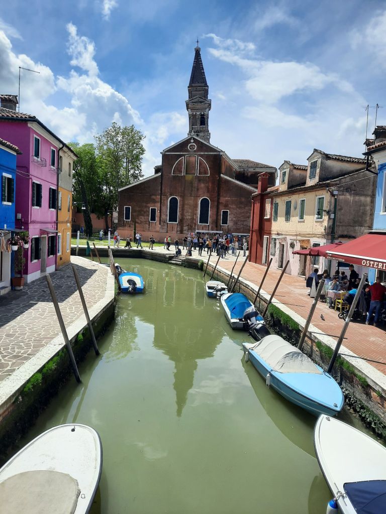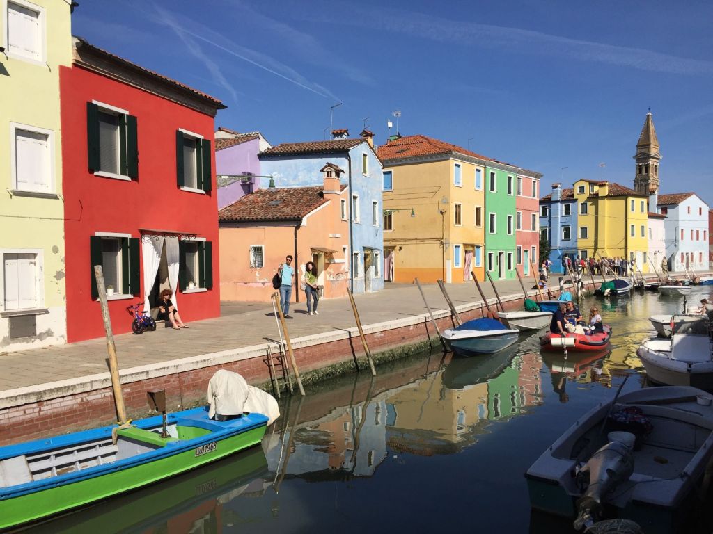 La pintoresca isla de Burano es famosa por sus casas pintadas con llamativos colores y por la producción de bordados y encajes de altisima calidad. En algunos de sus locales es aun posible ver trabajando a las abuelitas que han dedicado toda su vida a este antigua artesanía.